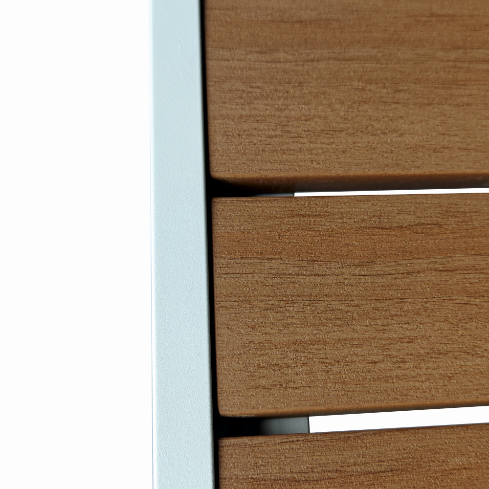 Setul este construit pe o structura solida din aluminiu, tratata special impotriva ruginii si a conditiilor meteo dificile, iar blaturile din polywood adauga un plus de stil si durabilitate.