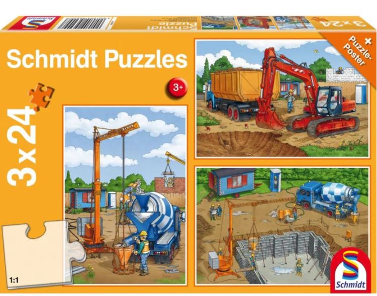 Puzzle Schmidt: Pe santier - Setul include 3 puzzle-uri cu ilustratii diferite a cate 24 piese fiecare + 1 poster Cadou. Intotdeauna este distractiv sa construiesti.