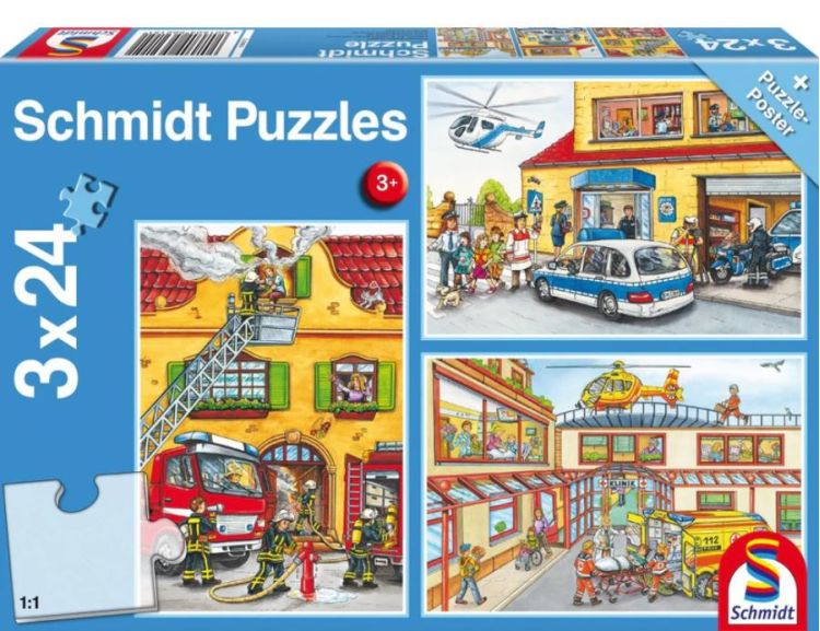 Set puzzle 3 x 24 piese Pompierii si politia Schmidt