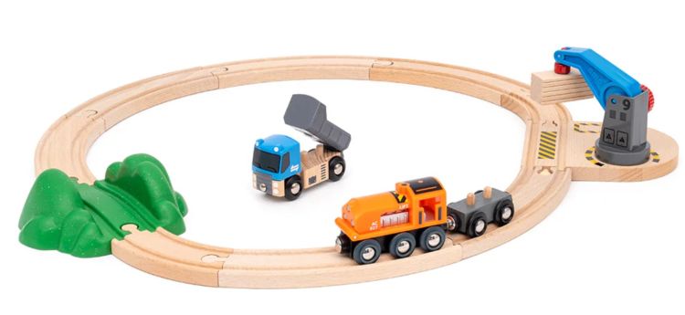 Set vehicule de transport, ridicare si incarcare marfa, pregatiti-va pentru prima aventura in lumea BRIO cu acest set de inceput, format din 14 piese.