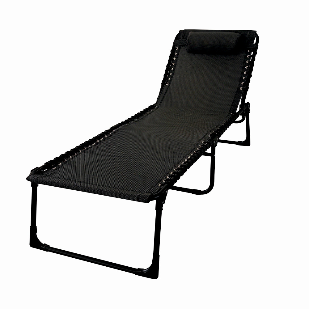 Sezlong pliabil din otel 189x59x34 cm din otel si fir textilene MESTERINO KJF3797, culoare neagra