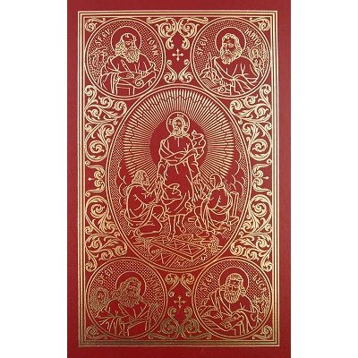 Ca si precedenta editie din anul 2010, actuala „Sfanta Evanghelie” urmeaza textul ultimei editii a Sfintei Scripturi (2008) si este imbogatita cu textele Evangheliilor consacrate Sfintilor romani care au slujba aprobata de Sfantul Sinod.