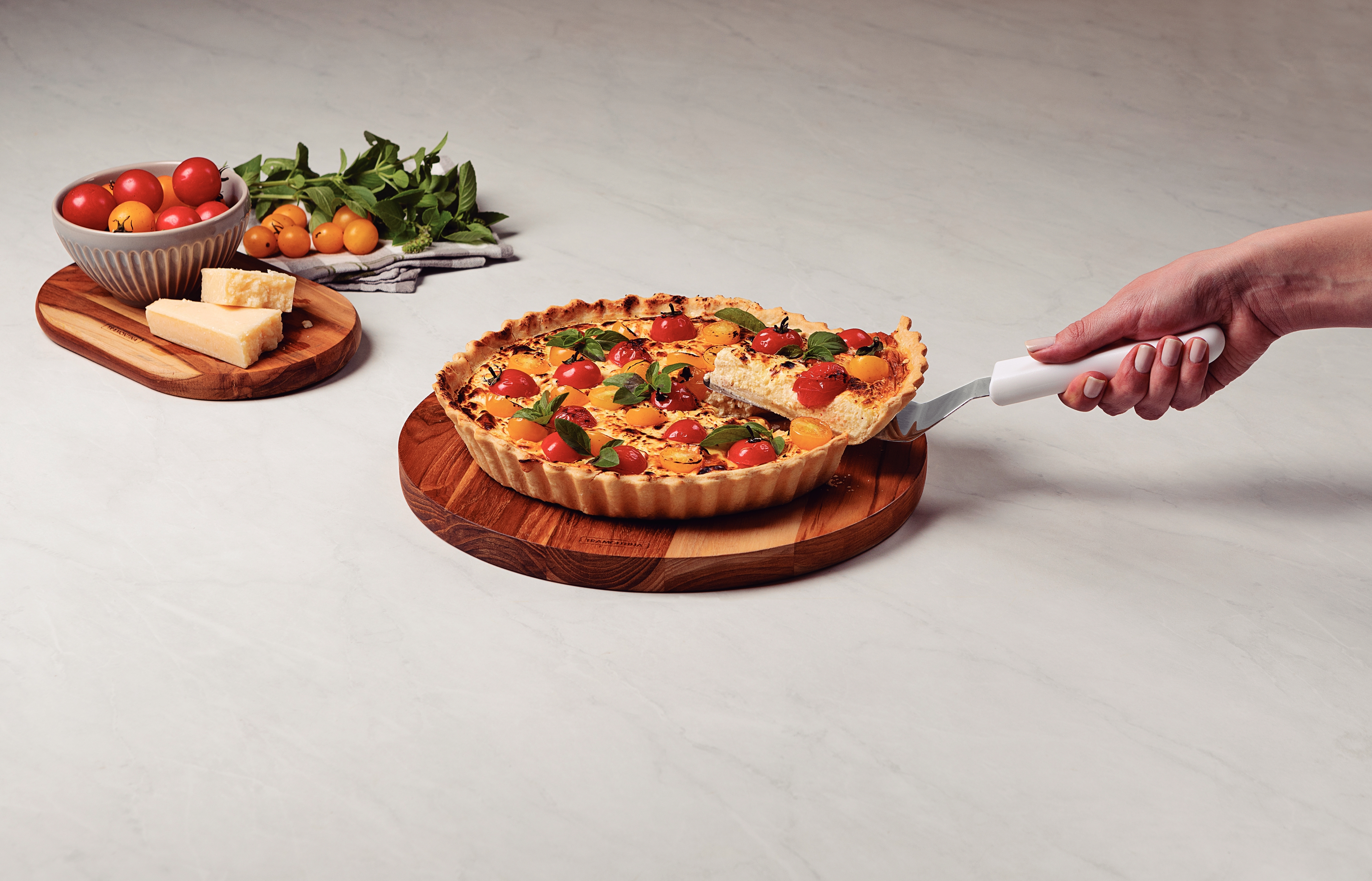Spatula pentru servire prajituri, gama PROFISSIONAL MASTER, inox de foarte buna calitate, dimensiune lama 152x57 mm, maner culoare alba din polipropilena cu protectie antimicrobiana Microban®, produs cu certificare NSF U.S.A., lungime totala 340mm