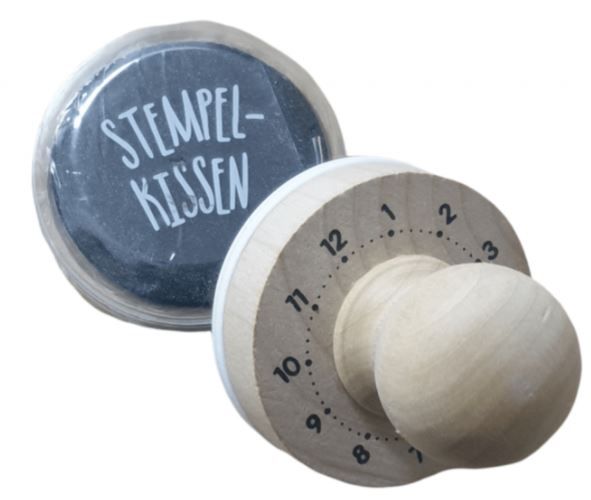 Stampila din lemn cu tusiera tip ceas 5x4cm Trendhaus CH28708 natur