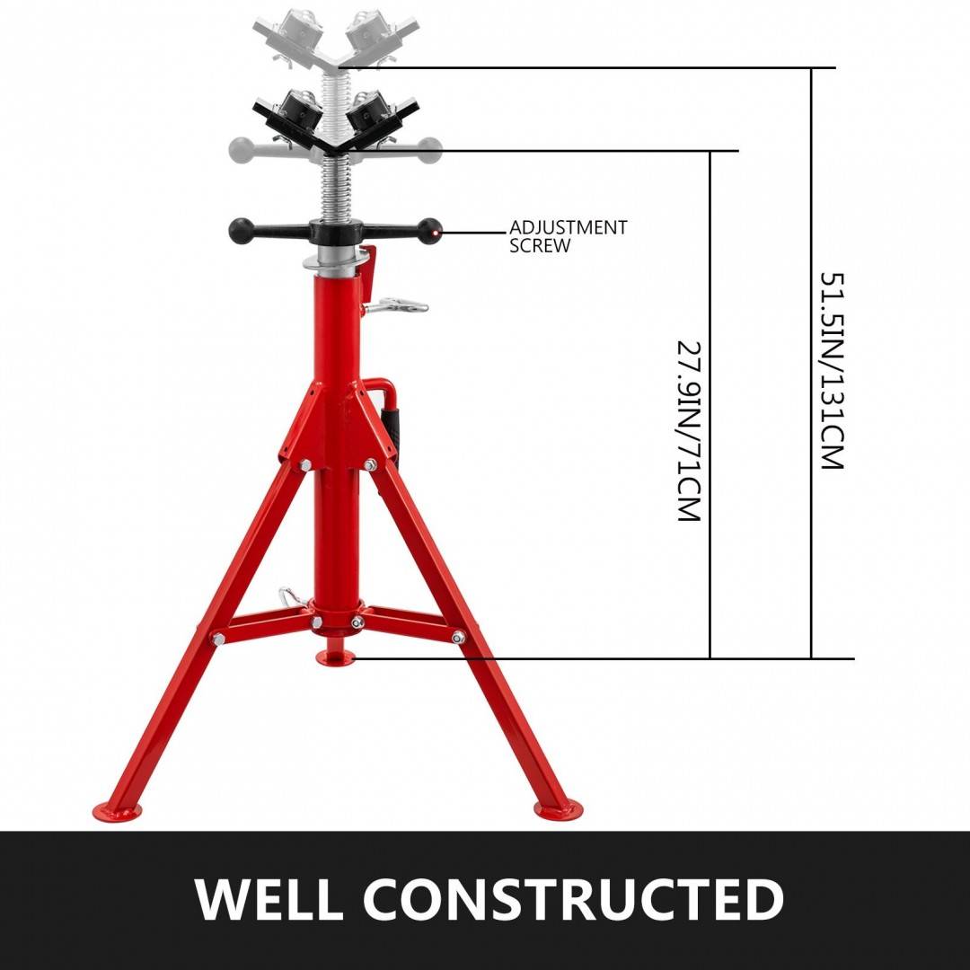 Suport cu role pentru tevi, Cap in V, Portabil, Pliabil, capacitate 1140 kg, Inaltime reglabila 71-131 cm
