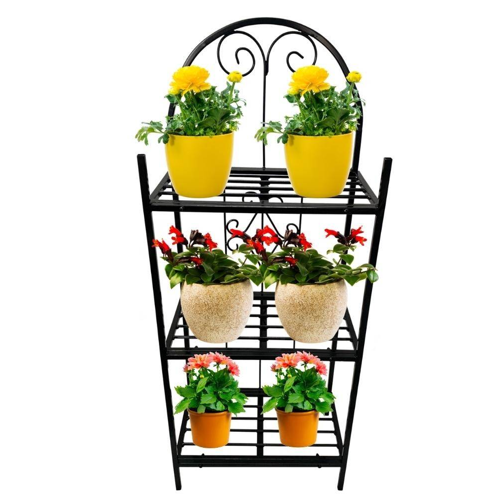Suport pentru flori Vivatechnix VMD-1073, Negru, 50x30x125 cm, 3 polite, demontabil
