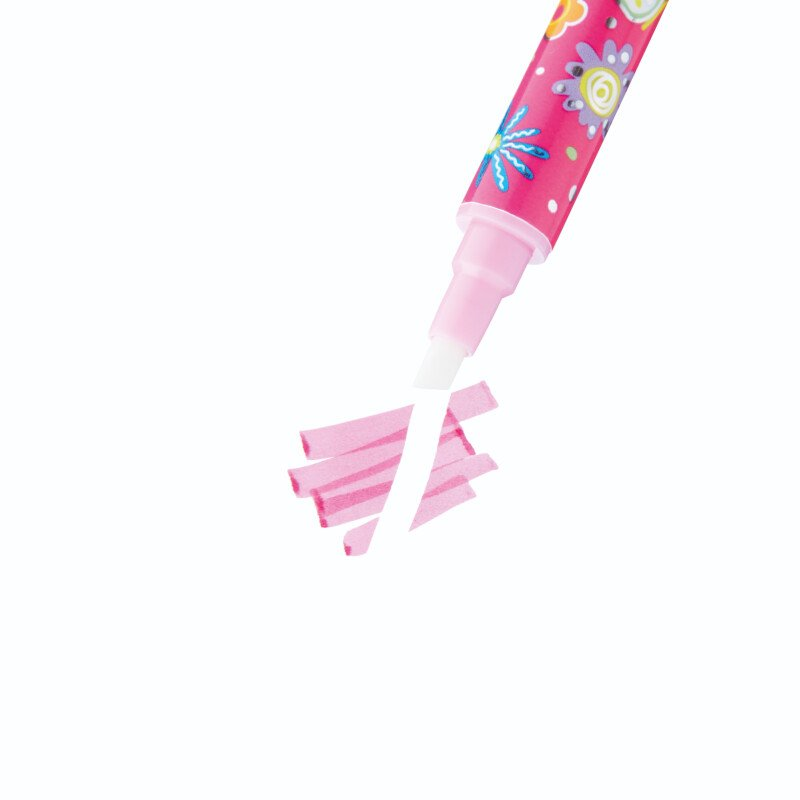 - 2 capete (rotund/teșit): Unul rotund pentru evidențiere cu cerneală neon și unul teșit pentru ștergere.