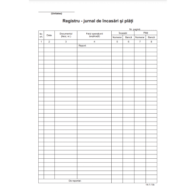 Tipizat registru jurnal incasari si plati A4, simplu, portret, 100 file