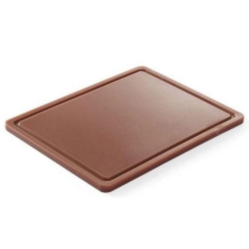 Tocator maro, 26.5x32.5x(H)1.2 cm - GN1/2, cu sant de scurgere, polietilena HDPE 500, respecta normele de igiena HACCP, Hendi.