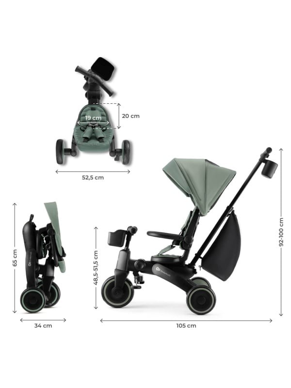 Tricicleta multifunctionala 5 in 1 KINDERKRAFT JAZZ 2, GREEN pentru copii intre 9 luni si 5 ani Va prezentam KINDERKRAFT JAZZ 2 GREEN tricicleta pliabila moderna 5 in 1, proiectata pentru copiii intre 9 luni si 5 ani. Aceasta tricicleta multifunctionala creste impreuna cu copilul tau, adaptandu-se nevoilor sale in fiecare etapa de dezvoltare. 5 moduri de utilizare o singura tricicleta pentru multi ani KINDERKRAFT JAZZ 2 GREEN ofera configuratii diferite, pe care le poti adapta cu usurinta la varsta si abilitatile copilului Etapa timpurie (9-18 luni) control total al parintelui cu masuri de protectie pentru cei mai mici dintre copii. Etapa de invatare (18-24 luni) copilul incepe sa pedaleze, in timp ce parintele continua sa controleze directia. Etapa de antrenament (2-3 ani) cel mic este mai independent si invata sa pedaleze si sa controleze directia. Etapa de independenta (3-4 ani) copilul merge singur pe tricicleta. Etapa de expert (4-5 ani) transformarea intr-o bicicleta fara pedale pentru cei mai avansati mici biciclisti. Pliere compacta ideala zi de zi si in calatorii Datorita constructiei bine gandite, KINDERKRAFT JAZZ 2 GREEN se poate plia in cateva secunde fara a utiliza unelte. Dupa pliere, bicicleta ocupa putin spatiu, acest lucru facand transportul si depozitarea mai usoare, chiar si in spatiile mici. Dupa pliere pastreaza o pozitie stabila, asa ca o poti depozita atat vertical, cat si orizontal. Scaun pivotant CLICK&TWIST flexibilitate si confort Scaunul care se roteste la 360° permite asezarea copilului cu fata sau spatele catre directia de mers. Aceasta solutie ii permite celui mic sa se simta in siguranta, permitandu-i contactul vizual cu parintele sau observarea lumii inconjuratoare. În plus, reglarea scaunului se poate face in ambele pozitii, potrivind bicicleta la inaltimea copilului si oferindu-i astfel confort sporit. Reglare pe mai multe niveluri potrivita pentru nevoi care se schimba rapid KINDERKRAFT JAZZ 2 GREEN este dotata cu un maner telescopic pentru parinte, scaun si parasolar reglabile. Aceste functii permit adaptarea perfecta a bicicletei la nevoile copilului si preferintele insotitorului, oferind o utilizare confortabila si ergonomica. Siguranta si control liniste pentru parinte Tricicleta KINDERKRAFT JAZZ 2 GREEN este dotata cu centuri de siguranta in 5 puncte, bariera detasabila si manere antialunecare. Functia de pedalare libera ii permite copilului sa invete sa pedaleze in timp ce parintele are control deplin asupra directie de deplasare. Perfecta pentru orice vreme protectie tot anul Copertina impermeabila cu filtru UPF50+ il protejeaza pe copil de soare si ploile usoare. Unghiul de inclinare se poate regla pentru a asigura protectia optima in diferite conditii de vreme. În plus, fereastra incorporata permite observarea discreta a celui mic in timpul plimbarii. Prin alegerea tricicletei KINDERKRAFT JAZZ 2 GREEN, investesti intr-o bicicleta multifunctionala, care se adapteaza la nevoile copilului tau, asigurandu-i protectia, confortul si bucuria de a descoperi lumea in fiecare etapa de dezvoltare. KINDERKRAFT JAZZ 2 GREEN Tricicleta pliabila 5 in 1 pentru copii de la 9 luni la 5 ani ✔ Creste impreuna cu copilul cele 5 moduri de utilizare permit adaptarea bicicletei la varsta si abilitatile copilului, de la primele plimbari la mersul independent. ✔ Pliere compacta sistemul de pliere rapida permite plierea bicicletei in cateva secunde fara a folosi unelte, facand mai usoare transportul si depozitarea, chiar si in spatii mici. ✔ Scaun pivotant 360° datorita functiei CLICK&TWIST copilul poate calatori cu fata sau spatele catre directia de mers, bucurandu-se de sentimentul de siguranta si mai mult confort. ✔ Siguranta si control deplin centurile in 5 puncte, bariera detasabila si functia de pedalare libera ii permit copilului sa invete sa pedaleze in timp de parintele controleaza directia de deplasare. ✔ Confort in orice conditii copertina impermeabila cu UPF50+, manerul pliabil pentru parinte si rotile amortizate EVA asigura atat confortul copilului, cat si al insotitorului. Specificatii Materialul cadrului plastic Materialul rotilor EVA Dimensiuni Înaltimea bicicletei depliate pana la manerul parintelui 92-100 cm Înaltimea bicicletei depliate pana la copertina 70 cm Lungimea bicicletei depliate cu maner 125 cm Lungimea bicicletei depliate fara maner 93,5 cm Latimea bicicletei depliate 52,5 cm Adancimea scaunului 19 cm Latimea scaunului 20 cm Latimea spatarului 22 cm Lungimea spatarului 40 cm Distanta de la sol la maner 48,5-51,5 cm Diametrul rotilor din fata 20 cm Diametrul rotilor din spate 17 cm Distanta dintre rotile din spate 52,5 cm Înaltimea bicicletei pliate fara maner, cu copertina 78 cm Înaltimea bicicletei pliate fara maner, fara copertina 65 cm Latimea bicicletei pliate fara maner 34 cm Lungimea bicicletei pliate fara maner 34 cm
