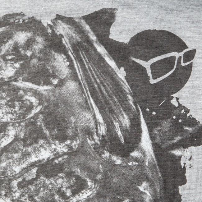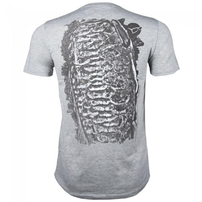 Tricoul are logo-ul "Korda" imprimat în zona pieptului, iar în partea din spate un desen ce imită un peşte.