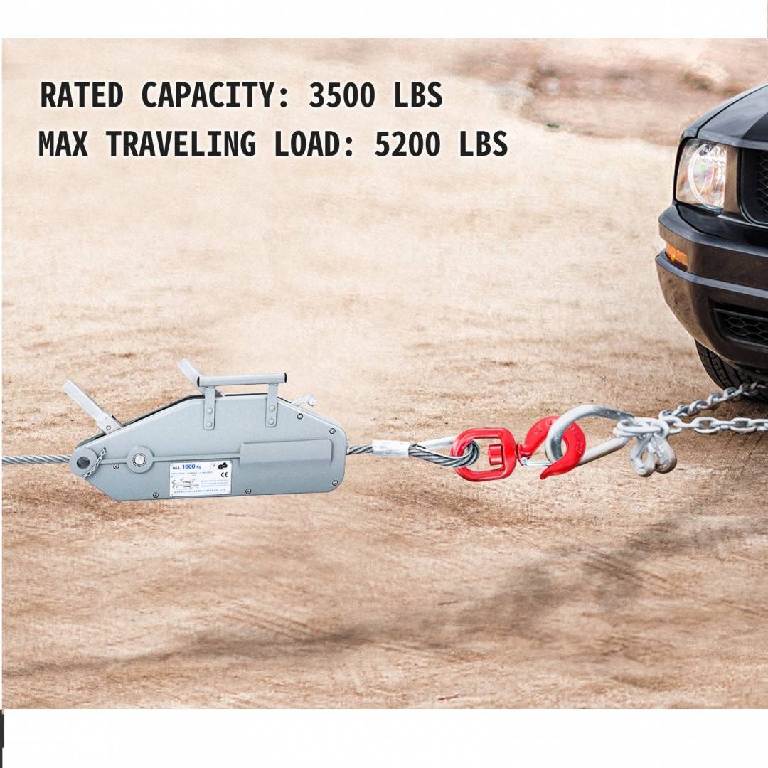 Troliu manual orizontal 1600 kg, Lungime cablu 20 m, cablu otel