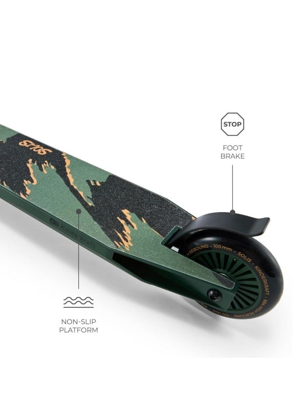 Trotineta sportiva pentru copii, adolescenti si adulti Kinderkraft SOLIS, GREEN Cauti o trotineta care le indeplineste asteptarile atat copiilor, cat si adultilor? Kinderkraft SOLIS GREEN este un model sportiv, ideal pentru mers si manevre mai dinamice. Cadrul rezistent din aluminiu si otel, precum si sarcina maxima de 100 kg o fac alegerea ideala pentru copii, incepand cu varsta de 5 ani, adolescenti si adulti. Datorita constructiei ergonomice usoare si designului sportiv, Kinderkraft SOLIS GREEN asigura atat multa distractie, cat si confort si siguranta in orice conditii. Constructie solida si durabila Cadrul rezistent, creat prin imbinarea unei platforme din aluminiu cu un ghidon din otel, asigura durabilitate chiar si in cazul utilizarii intensive, cu sarcina maxima de 100 kg. Kinderkraft SOLIS GREEN este pregatita pentru orice vreme si orice suprafata. Control perfect si stabilitate Ghidonul lat cu inaltimea de 80 cm si latimea de 51 cm, in forma literei Y, asigura stabilitate perfecta si controlul trotinetei, permitand manevrarea usoara si prinderea sigura in timpul mersului. Mers lin si rapid Datorita rulmentilor avansati ABEC-9, care reprezinta unul dintre cele mai ridicate standarde pentru trotinete, Kinderkraft SOLIS GREEN asigura rotirea lina a rotilor cu frecare minima. De aceea, trotineta se deplaseaza rapid si fara efort. Rotile realizate din PU sunt rezistente la tocire si au o aderenta buna pe diverse suprafete. Diametrul de 10 cm al rotilor face ca trotineta sa fie potrivita atat pentru cei mai mici dintre copii, cat si pentru adulti, oferind stabilitate si control. Nivelul de duritate 88A al rotilor indica faptul ca acestea sunt suficient de tari pentru a asigura o viteza buna si rezistenta la uzura, fiind in acelasi timp suficient de moi pentru a amortiza eficient micile denivelari si a asigura un mers confortabil. Siguranta si confortul mersului Platforma lata cu suprafata antialunecare asigura o pozitie a talpilor confortabila si sigura, lucru esential pentru mentinerea echilibrului si controlului in timpul mersului. Design unic precum caracterul tau Modelele grafice unice de pe platforma ii permit fiecarui utilizator sa isi exprime stilul individual, oferind trotinetei un caracter personal. Transport usor si franare eficienta Constructia usoara (3,1 kg) usureaza transportul, iar frana solida asigura oprirea eficienta in orice situatie. Trotineta indeplineste norma EN 146192019, care garanteaza siguranta si calitatea ridicata a executiei. Kinderkraft SOLIS GREEN este mai mult decat o trotineta este garantia distractiei dinamice si in siguranta pentru intreaga familie, indiferent de varsta sau abilitati. Ofera-ti cea mai buna experienta pe roti cu Kinderkraft SOLIS GREEN. Kinderkraft SOLIS GREEN trotineta sportiva pentru intreaga familie ✔ Kinderkraft SOLIS GREEN trotineta sportiva Ideala pentru copii incepand cu varsta de 5 ani, adolescenti si adulti cu sarcina maxima de pana la 100 kg. Asigura distractie, confort si siguranta. ✔ Constructie rezistenta Cadrul realizat din aluminiu si otel garanteaza durabilitatea chiar si in cazul utilizarii intense. Este mereu pregatita pentru aventuri pe diverse suprafete. ✔ Control perfect si stabilitate Ghidonul lat cu inaltimea de 80 cm si latimea de 51 cm in forma literei Y asigura stabilitate si faciliteaza manevrarea. ✔ Mers lin si rapid Rulmentii avansati ABEC-9 si rotile PU cu diametrul de 10 cm si duritate 88A asigura frecarea minima, viteza si aderenta perfecta pe diferite suprafete. ✔ Confort si mers in siguranta Lungimea platformei cu dimensiunile de 50,5 cm x 11 cm cu strat antialunecare sporeste siguranta, asigurand o pozitie confortabila a talpilor si mentinerea echilibrului cu usurinta. ✔ Stil unic Posibilitatea de alegere a unuia dintre cele trei modele grafice pe platforma, care le permit utilizatorilor sa isi exprime caracterul individual. ✔ Transport usor si franare eficienta Constructia usoara (3,1 kg) faciliteaza transportul, iar frana de picior solida garanteaza oprirea rapida si dinamica in orice situatie. Trotineta indeplineste norma EN 146192019, lucru ce confirma executia de inalta calitate si siguranta. Specificatii Platforma aluminiu Y-bar otel Roti PU Dimensiuni Înaltime totala 80 cm Lungime totala 67 cm Latimea ghidonului 51 cm Lungimea totala a platformei 50,5 cm Latimea platformei 11 cm Dimensiunile utilizabile ale platformei 35 cm x 11 cm Diametrul rotilor 10 cm Greutate 3,1 kg