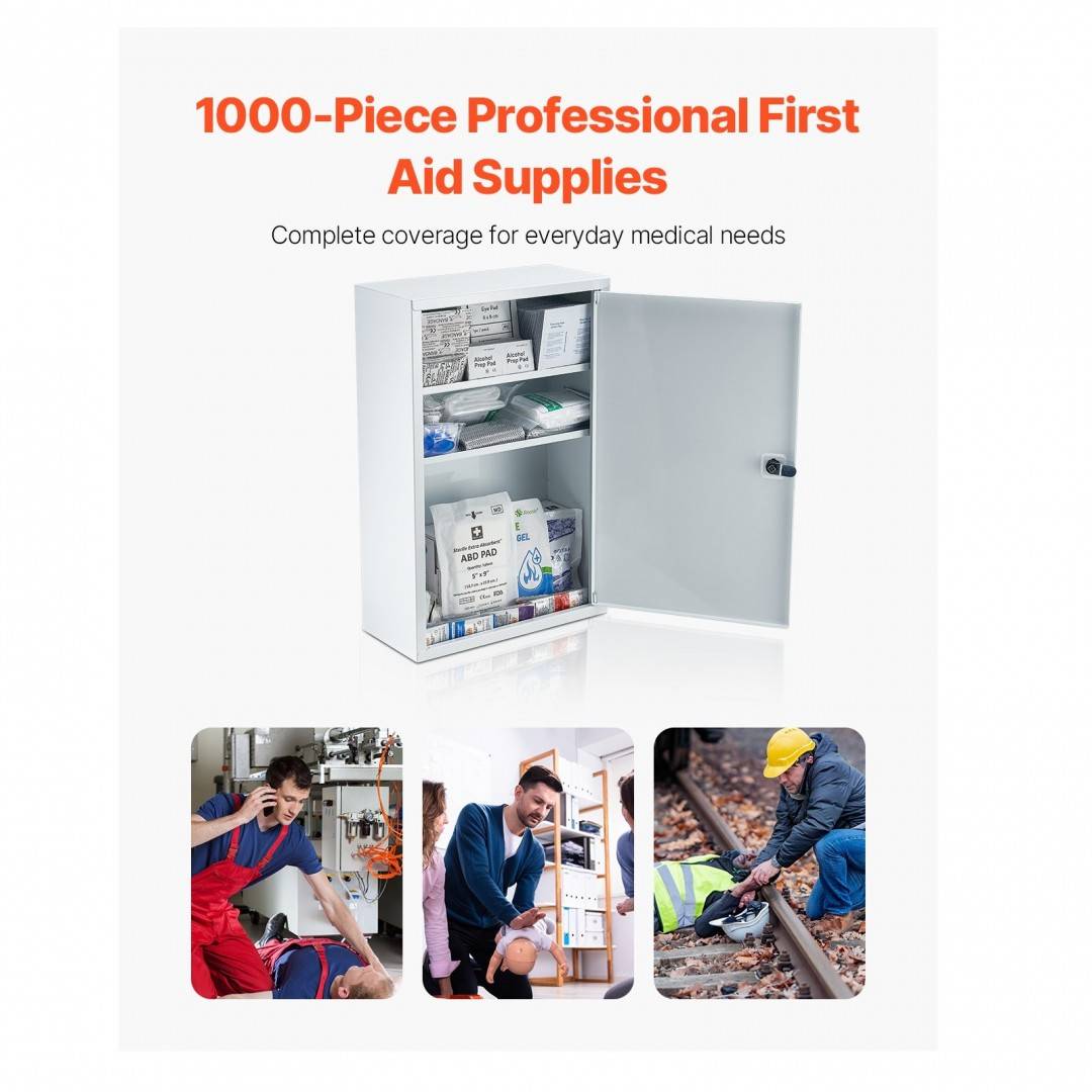 Trusa de prim ajutor profesionala cu 1000 de piese, Fixa, Otel, 460 x 300 x 140 mm