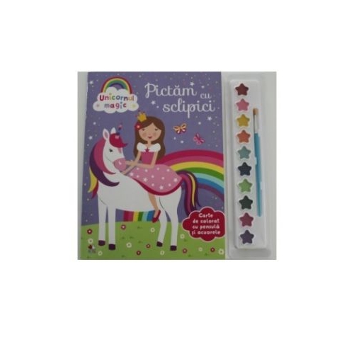 UNICORNUL MAGIC. PICTAM CU SCLIPICI. Carte de colorat cu pensula si acuarele
