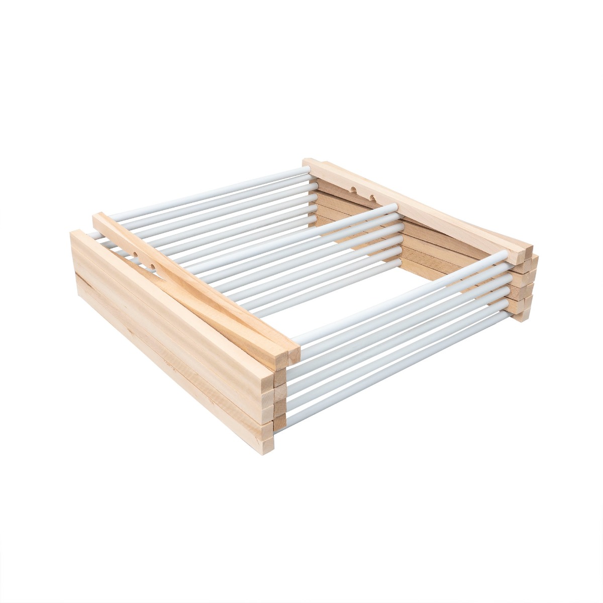 Cadrul acestuia este confectionat din lemn iar barile de sustinere sunt din plastic.