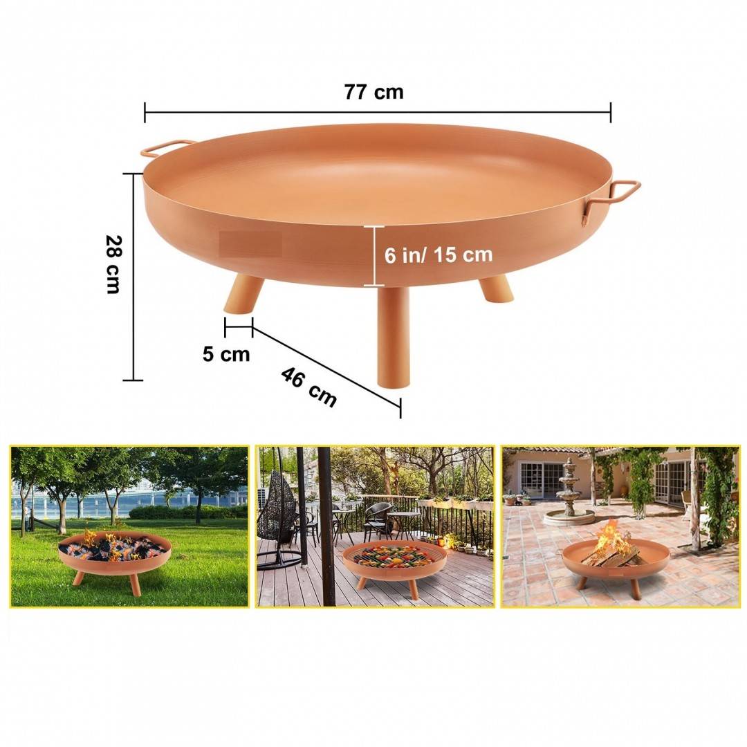 Vatra foc pentru terasa, camping, Vivatechnix Otel Carbon, Diametru 77 cm, Maro, Inaltime 28 cm