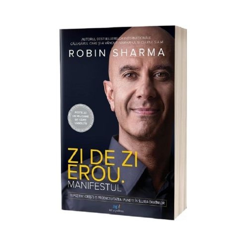 Fii pozitiv. Creste-ti productivitatea. Pune-te in slujba oamenilor Zi de zi erou. Manifestul The Everyday Hero Manifesto de Robin Sharma este o carte despre eroul din tine. Este o carte care te va ajuta sa te dezvolti sa te vindeci si sa evoluezi spiritual fiind pe deplin constient de faptul ca eroi nu sunt doar marile personalitati ale lumii precum Nelson Mandela Harriet Tubman Mahatma Gandhi Florence Nightingale sau Oskar Schindler eroi suntem fiecare dintre noi intr-o anumita masura atunci cand ne ghidam dupa principii sanatoase de viata. Cartea de fata iti va furniza in acest sens o serie de povesti si lectii de viata care te vor inspira sa traiesti dupa alte coordonate bucurandu-te mai mult si suferind mai putin. Zi de zi erou. Manifestul este cu alte cuvinte o carte excelenta pentru toti cei care isi doresc sa se reinventeze sau sa abordeze viata intr-o maniera diferita de cea in care au facut-o pana acum. Robin Sharma este un umanist respectat la nivel mondial care de peste un sfert de secol isi dedica activitatea ajutarii fiintelor umane sa isi descopere harul si magia personala cu scopul de a trai viata pe care si-o doresc. Considerat a fi unul dintre cei mai buni experti in leadership si maiestrie personala din lume Robin Sharma are o clientela selecta alcatuita din miliardari celebri sportivi profesionisti emblematici si numeroase companii care figureaza in topul Fortune 100. Bestsellerele autorului printre care se numara Clubul 5 a. m Ghidul maretiei ambele aparute la editura ACT si Politon Calugarul care si-a vandut Ferrari-ul si Lider fara functie s-au vandut in milioane de exemplare si au fost traduse in peste 92 de limbi si dialecte ceea ce face ca Robin Sharma sa se numere astazi printre cei mai cititi scriitori in viata. Noi am devenit o natie prea usor de ranit teribil de delicata si mult prea slabita. Am devenit o societate de nemultumiti mofturosi si hedonisti care cauta peste tot si incontinuu doar confort placere si lux. - Robin Sharma Zi de zi erou. Manifestul Ideea cartii a fost inspirata de insasi povestea de viata a lui Robin Sharma care la inceputul carierei sale desi era un avocat de succes desi castiga bine si intrunea teoretic toate conditiile pentru a se considera un om de succes se simtea gol pe dinauntru nesatisfacut din punct de vedere creativ si nu mai reusea sa se regaseasca. Prin urmare a inceput o campanie de dezvoltare personala ampla de vindecare emotionala profunda si de progres spiritual intens. Campania a dat rezultatele scontate in cazul lui de aceea Sharma este absolut convins de faptul ca oricine este capabil sa faca schimbari radicale in viata sa pentru a trai asa cum isi doreste cu adevarat. Povestea bestsellerului international Calugarul care si-a vandut Ferrari-ul - o minunata carte-fabula despre cum sa treci de la o viata traita pe jumatate la una traita cu curaj in care orice este posibil - este un exemplu convingator in acest sens. Autorul povesteste astfel cum a fost respinsa cartea in nenumarate randuri de numeroase edituri si cum si-a intarit astfel convingerea ca Obstacolele nu sunt decat felul in care viata te testeaza cat de mult doresti sa-ti implinesti visurile... Sfatul pe care il vei extrage din aceasta poveste a schimbat numeroase vieti si ar putea sa-ti schimbe si tie viata Te rog sa sapi la radacina fricilor care te tin incatusat sa explorezi limitele care te constrang si sa devii constient de toate lucrurile care te-au ranit in trecut si care acum te opresc si sa te ridici deasupra lor. Volumul Zi de zi erou. Manifestul este alcatuit din 101 eseuri motivationale care abordeaza subiecte foarte variate precum cum poti face trecerea de la statutul de victima la cel de erou sfaturi demne de urmat de la cei mai buni mentori o lectie pretioasa de viata de la un banal vanzator de castane principiul IPOP pentru pozitivitate accelerata pericolele mediocritatii si importanta increderii in sine lectiile pe care ni le poate preda o trauma factorii care ne impiedica sa atingem excelenta productivitatea tehnica lui Misty Copeland de construire a increderii de sine cum sa iti transformi frica in combustibil si slabiciunile in valoare cat de important este sa intelegi faptul ca desi esti diferit de ceilalti esti la fel de valoros ca oricare dintre ei cum sa ucizi ceea ce iubesti atunci cand vine vorba de creatie cat de multe uitam sa simtim atunci cand suntem blocati in propriile noastre ganduri povestea omului care a clipit de doua sute de mii de ori pentru a scrie o carte The Diving Bell and the Butterfly Scafandrul si fluturele dupa ce a suferit un accident vascular cerebral major care l-a lasat complet paralizat cu exceptia unei pleoape cele mai bune modalitati de a-ti imbunatati autodisciplina si abilitatea de a fi consecvent cum lucreaza eminentele cum sa devii un comunicator fantastic cum sa atingi culmile succesului cum sa le inchizi gura celor care te invidiaza care sunt lucrurile pe care ti le doresti cel mai mult in viata si un mic imbold pentru a nu mai amana sa te bucuri de ele. Cartea de fata te va ajuta sa iti schimbi perceptia asupra lucrurilor si a oamenilor din jurul tau dar si sa accepti mai usor acele parti imperfecte ale vietii tale care nu trebuie sa te impiedice sa ai o viata mareata. In urma acestei calatorii literare care te va determina sa meditezi la adancurile cele mai profunde ale fiintei tale vei extrage cateva lectii pretioase de viata de la personalitati precum legenda jazzului mondial Miles David Niki Lauda fost campion mondial de Formula 1 Bluzz Aldrin unul dintre astronautii de pe Apollo 11 care a facut parte din primul echipaj care a ajuns pe Luna cantareata Sinead O Connor Desmond Tutu unul dintre cei mai mari lideri filantropi si revolutionari din istorie Benjamin Franklin etc.